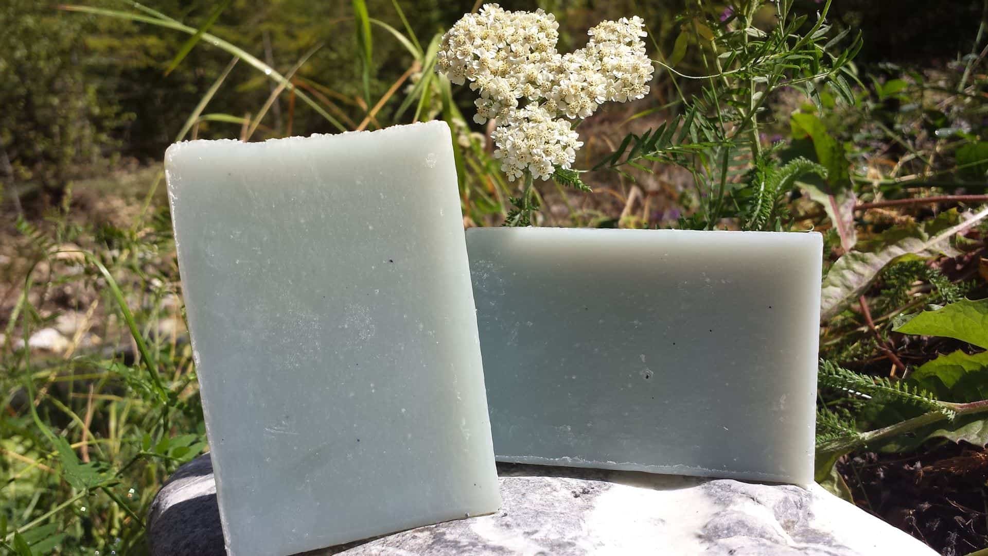Garden Party, scented with lavender and peppermint and coloured a mauvey blue. Makes you smell like you’ve been out rolling around in the herb garden.